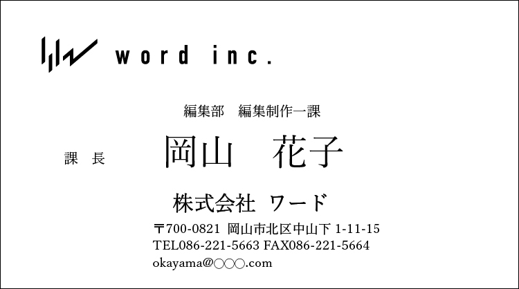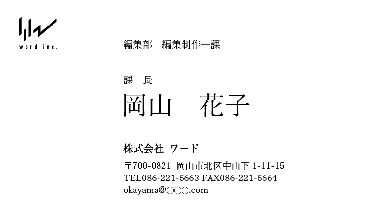 先ほどの(A)は実際によくある名刺のレイアウトですが、(C)は弊社のデザイナーと弊社社長のディレクションによって制作された名刺です。