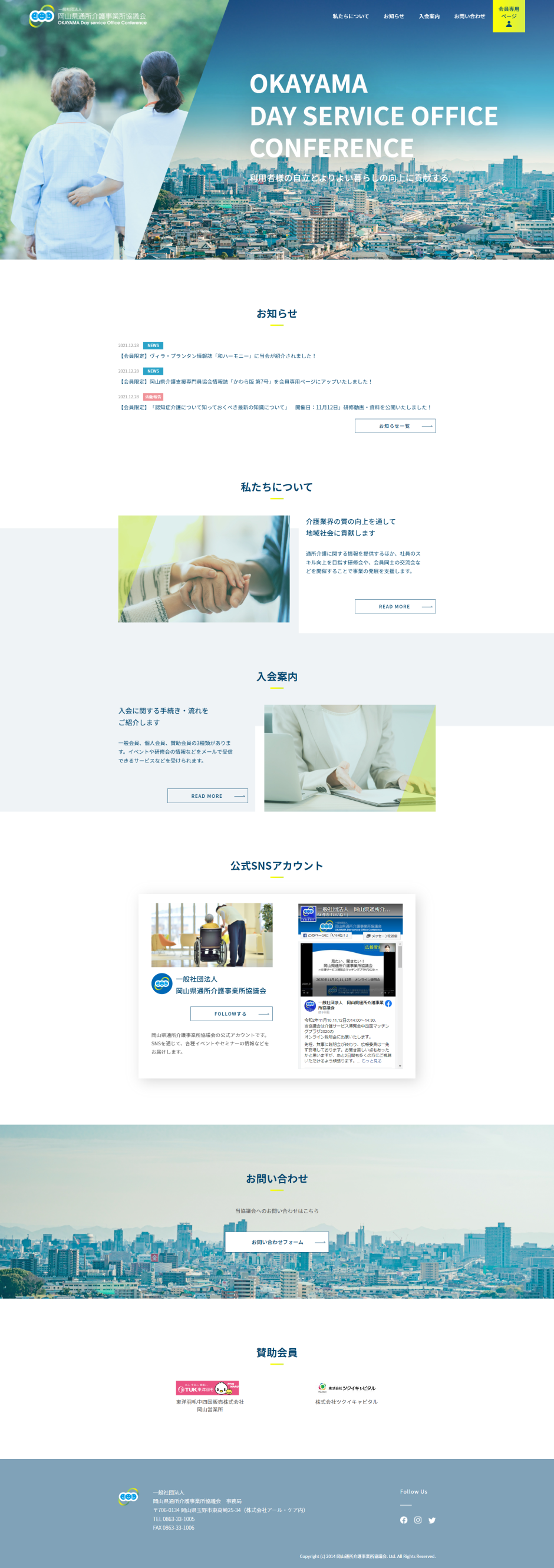 岡山県において、「介護業界の質の向上」や「地域社会への貢献」「介護士のスキル向上・交流」を目指して活動を行う岡山県介護事業所協議会様。もともと団体のホームページはお持ちでしたが、無料のテンプレートサービスを利用して更新をされていたため、デザイン変更、情報更新ともに自由度が低く、使い勝手の悪さを感じておられました。