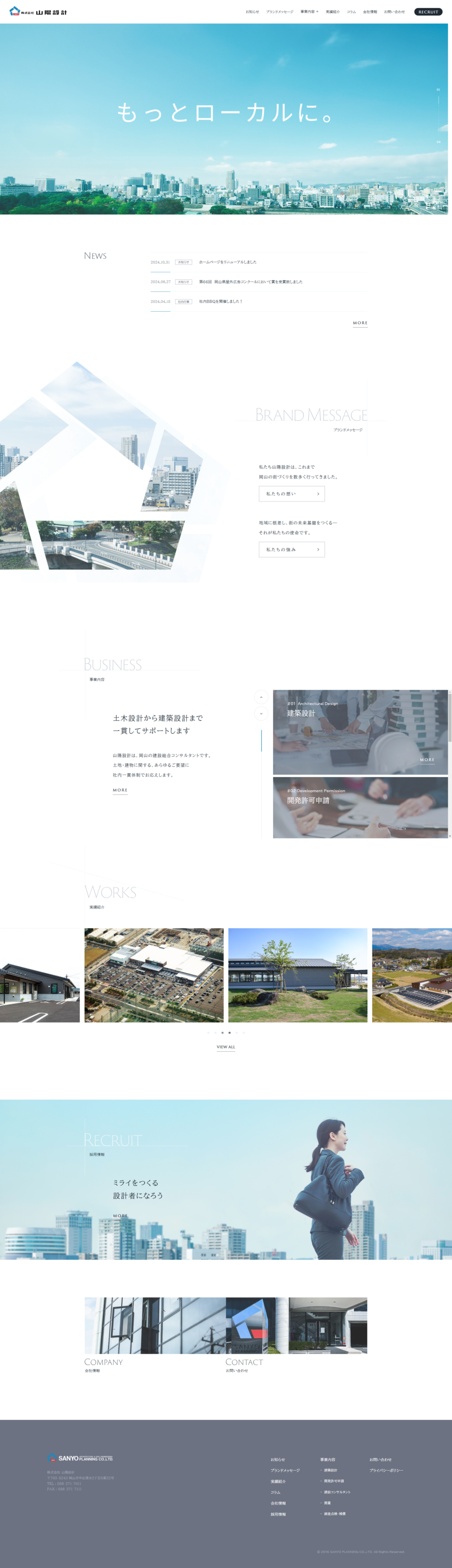 岡山県岡山市で昭和48年から建築設計を行う「株式会社山陽設計」様。50年以上に渡り学校や病院、店舗や公共建築物など、岡山の街づくりに貢献されています。もともと使われていたホームページが古く、操作性が悪くなっていたため、リニューアルのご相談をいただきました。